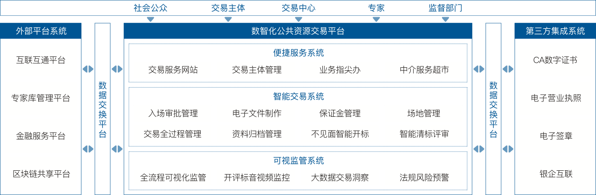 公共資源交易平臺是公司面向各級公共資源交易中心客戶開發(fā)的一套集服務(wù)、交易、監(jiān)管為一體化的信息化平臺。運(yùn)用大數(shù)據(jù)、人工智能等技術(shù),實(shí)現(xiàn)“資源共享、集中服務(wù)、統(tǒng)一管理、依法監(jiān)督”,為公共資源交易中心構(gòu)建公正開放、競爭有序、監(jiān)管有力、服務(wù)到位的公共資源交易管理服務(wù)體系。系統(tǒng)包括政府采購、建設(shè)工程、產(chǎn)權(quán)交易、土地(礦權(quán))交易四大業(yè)務(wù)體系和內(nèi)部綜合辦公系統(tǒng),既可以整體規(guī)劃建設(shè),又可以根據(jù)實(shí)際情況任意單獨(dú)或組合建設(shè)。